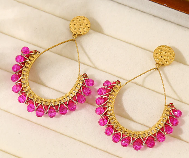 Boucles d'oreilles en forme de goutte avec cristaux fuchsia. T